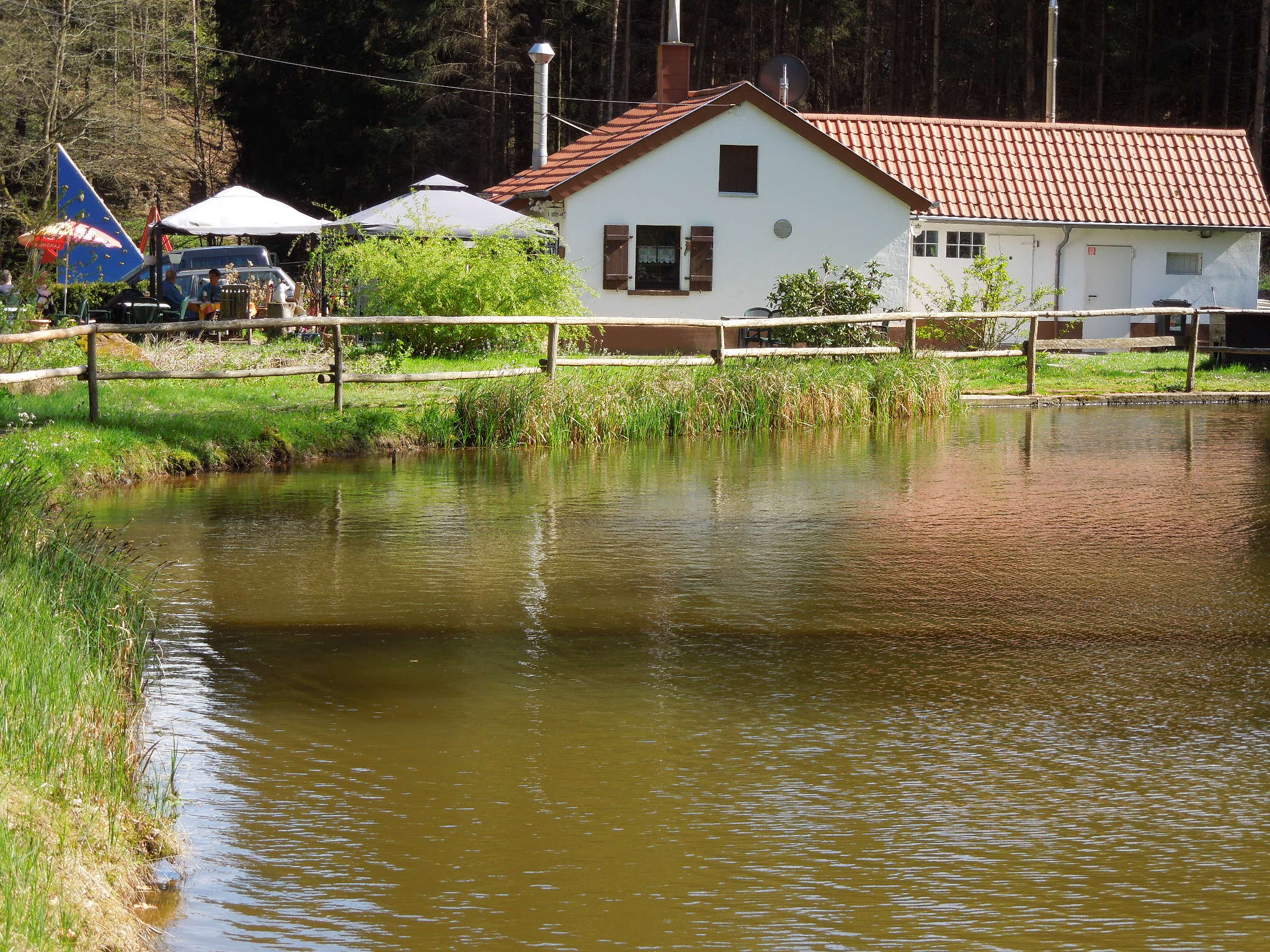 Unterer Weiher (Aufzuchtweiher) mit Blick auf die Waldschenke